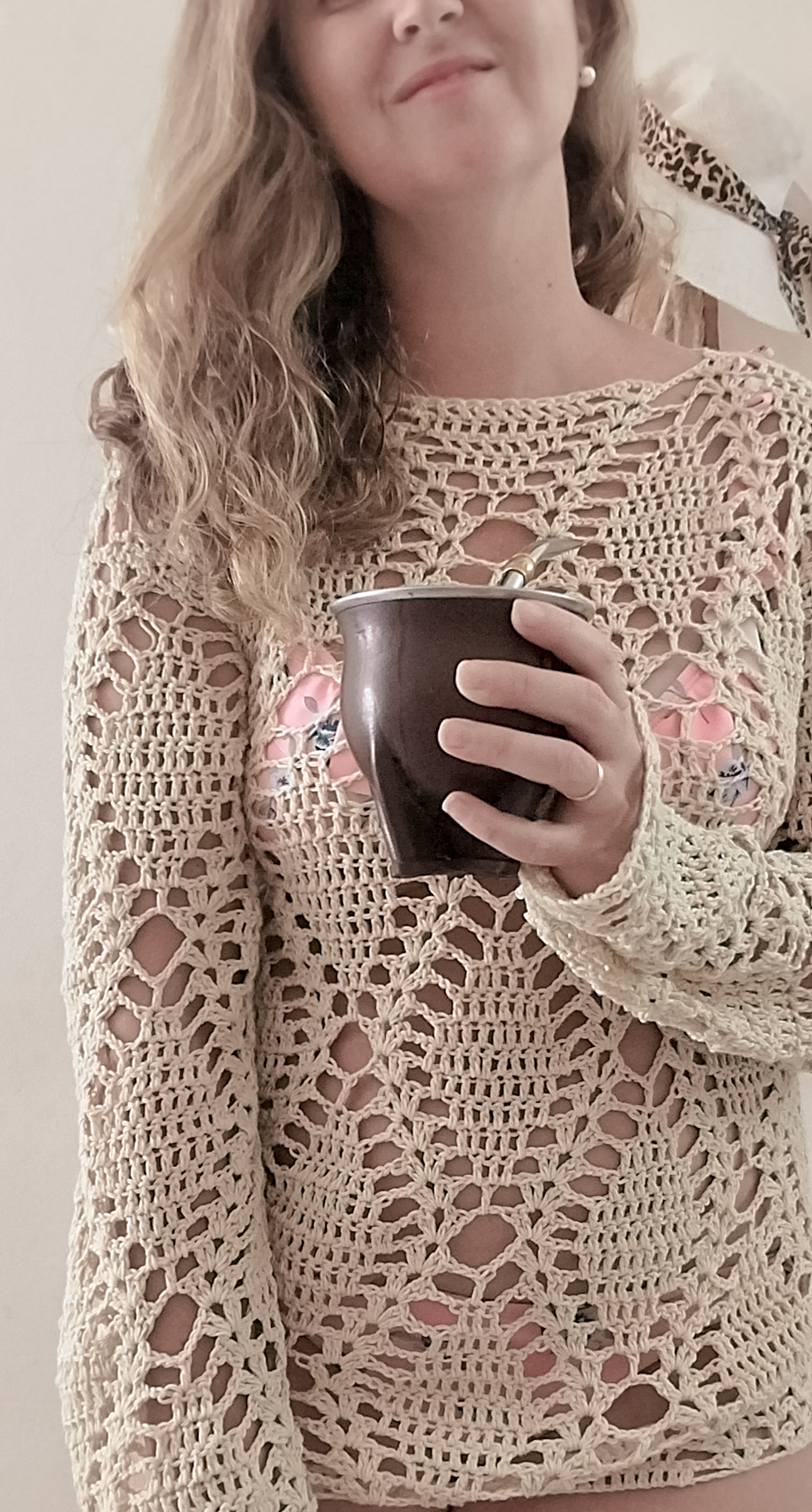 Curso online de crochet/ como tejer un sweater a partir de una trama de rombos -Sweater Praia