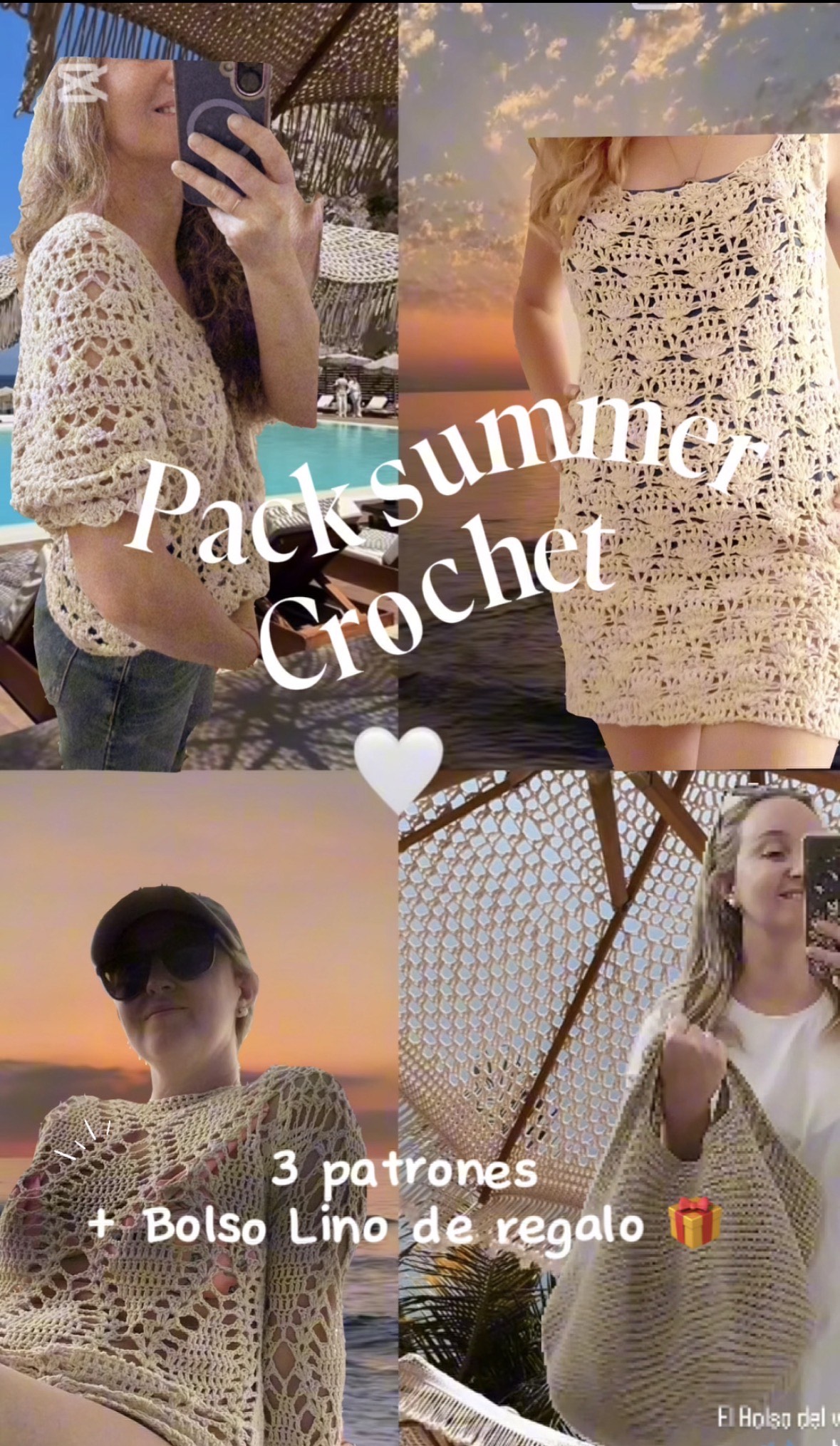 Pack Summer Crochet 3 Guías de tejido al valor de 1 : 3×1 + Patrón Bolso Lino